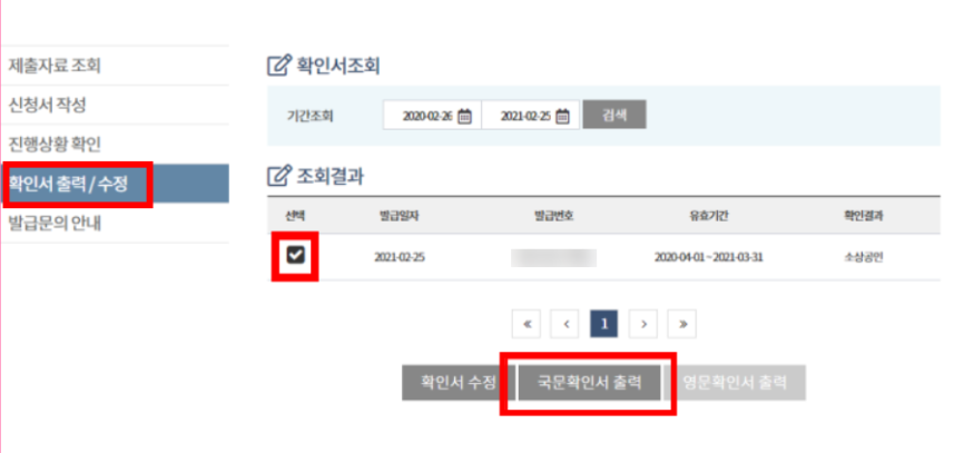 - 심사 후 발급 → “확인서 출력” 메뉴에서 즉시 다운로드 가능