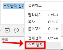 - 메시지 작성 후 가릴 부분 드래그 → ‘스포방지’ 선택. 한 말풍선에 최대 10곳 설정 가능.
